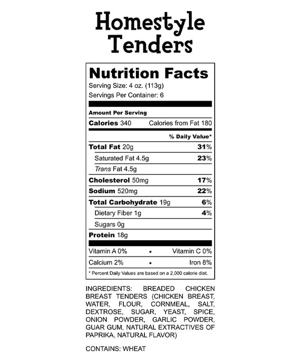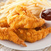 Crispy, breaded chicken tenders. These tenders vary in size.