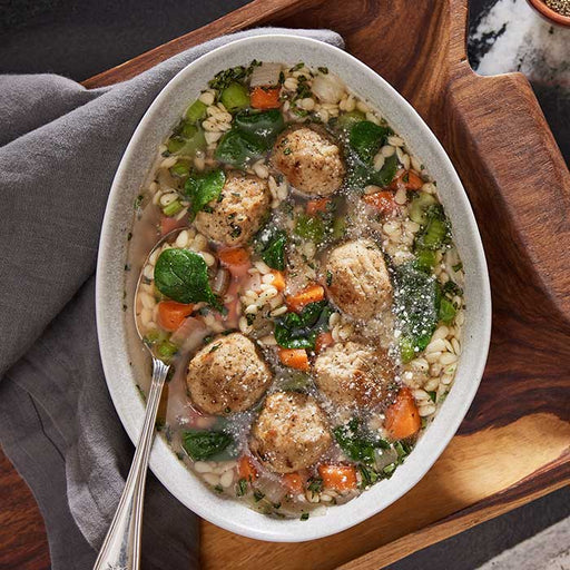 Feeds 2 peopleA hearty Italian Wedding Soup with hand-rolled all-beef meatballs and a medley of veggies and pasta. The perfect comforting soup for a chilly ev...