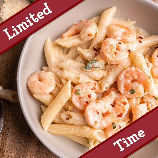 Feeds 1-2 people per portionSucculent shrimp in our creamy, made-from-scratch parmesan alfredo sauce and served over penne pasta. This meal is sold by the portion. One port...