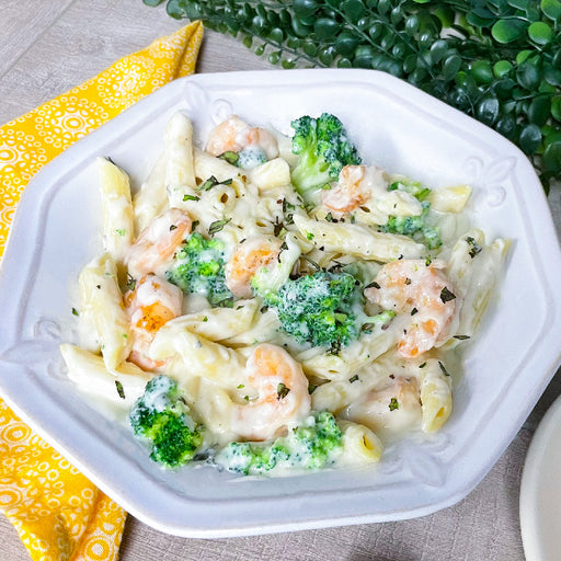 Succulent shrimp in our creamy, made-from-scratch parmesan alfredo sauce and served over penne pasta. This meal is sold by the portion. One port...