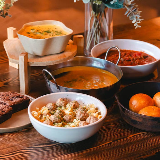 Our gourmet gift boxes are shipped nationwide and arrive fully prepared—just heat and serve. There's no chopping, cooking, or cleanup involved, making them an ideal way to provide real, comforting food without the work. These one-time gift boxes require no subscription, and each one includes multiple servings, giving your recipient several easy, hearty meals to enjoy throughout the week. With options like our signature Soup Gift Box, Healing Hug Gift Box, or other curated comfort meal packages, it’s easy to find the right fit for anyone—whether they’re feeding a family or just themselves.