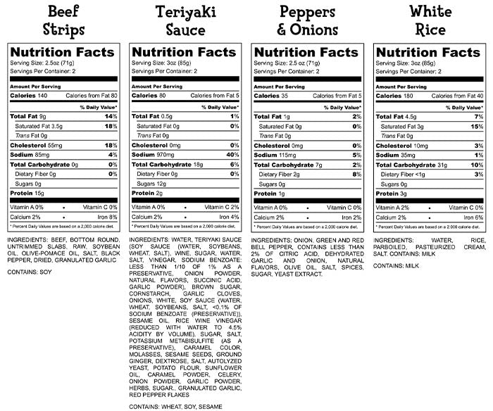 • All of our meals come prepackaged and ready to cook. Each portion of this meal comes with: one bag of Pepper Steak and one bag of white rice.