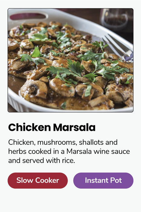 - One and a half pounds of Chicken Marsala and rice (two servings)
