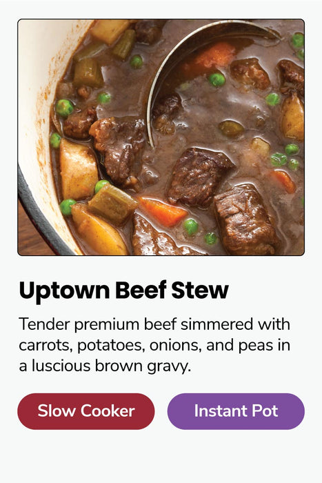 - One and a half pounds of Uptown Beef Stew (two servings)